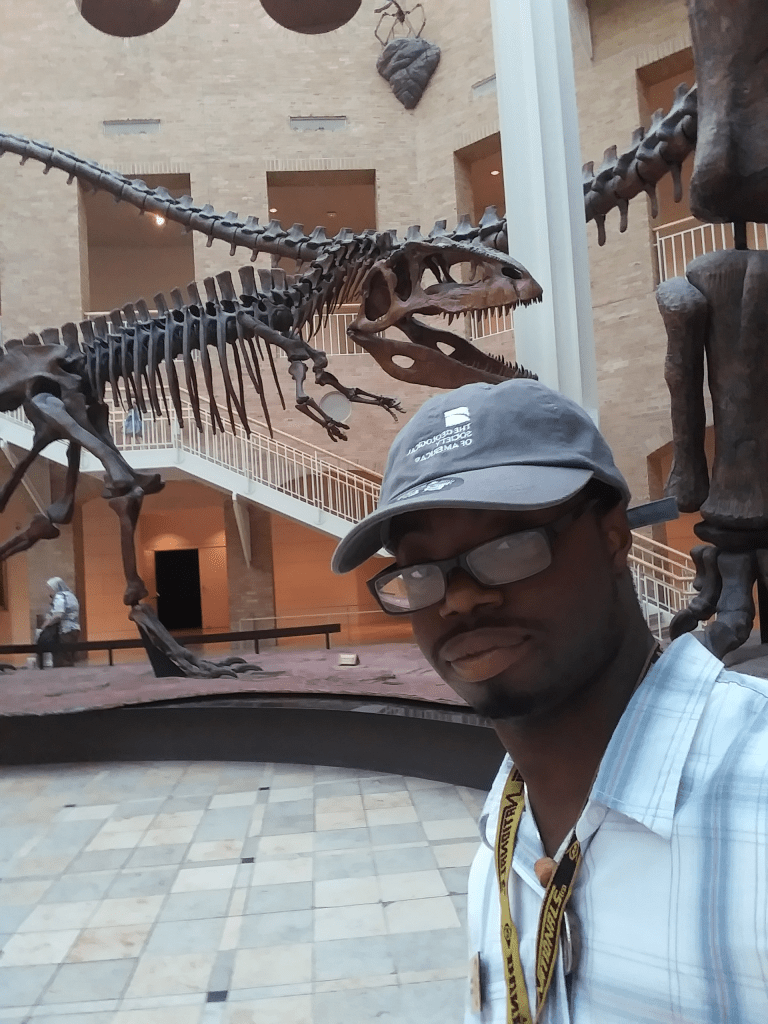 “I’ve always had an interest in Dinosaurs growing up. I was the child who often gets typically labelled as the ‘dinosaur-obsessed’ child in the family and school. Many of us go through what is called a ‘Dinosaur Phase’. Some lose that interest and move on to other things. I never lost that curiosity. I would often spend hours in my school and public libraries reading books on dinosaurs and other forms of prehistoric life. I wanted to learn as much as I could. When I was 7 years old, my father took me to the Fernbank Museum of Natural History in Atlanta, Georgia and saw huge cast skeletons of the dinosaurs Giganotosaurus and Argentinosaurus. These animals were huge and I was dumbfounded. I knew I had to become a paleontologist.