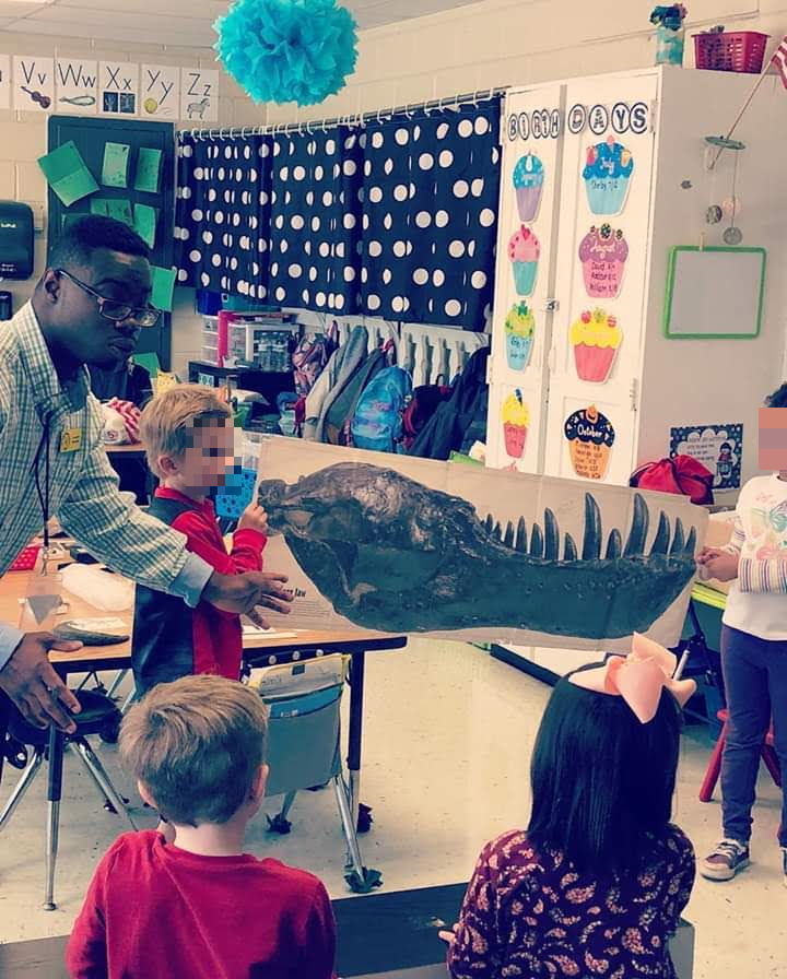 “I’ve always wanted to talk to people about fossils and things I found interesting. I began to do this around the age of 12. I watched a YouTube video of a geology professor giving a lesson on how to identify rocks and minerals. My mother bought me a camcorder and I would stack books on a stool and get in front of the camcorder and talk about geology. I look back at it now and cringe haha. However, I knew it would eventually help me in the future and it did! My communication skills have definitely improved over time but I am always learning how I can make science engaging. I think it has indeed changed me as a person. It has made me realize how inaccessible a lot of this information can be to the general public. I have made it my duty to change that.”