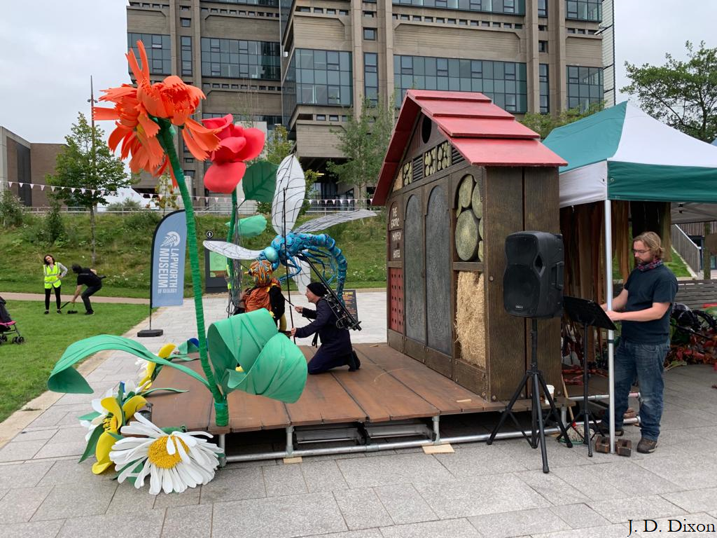 The Insect Safari was an outdoor public event hosted in partnership with The Fetch Theatre Company. It was a stage show that spun a tale of a showperson spider and an enthusiastic fly as they explored global insects and unlocked a fossiliferous mystery, using impressive puppets and large models to illustrate the story. We helped monitor the event and then aided the troupe in dismantling their stage and packing away their equipment. This gave us insight into the mechanisms of a production beyond the performance itself.