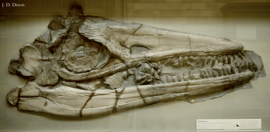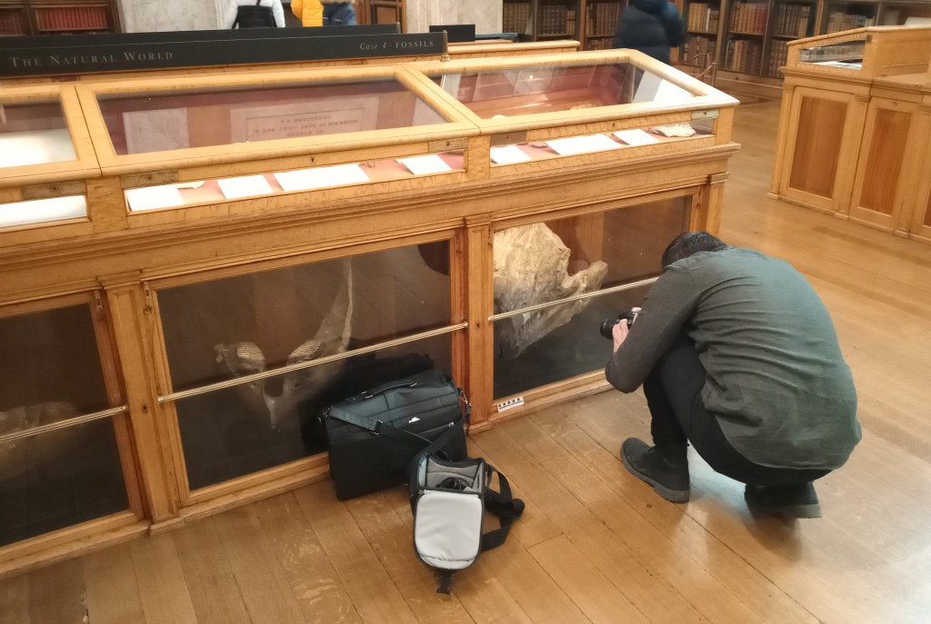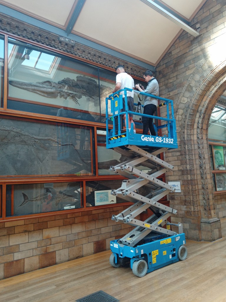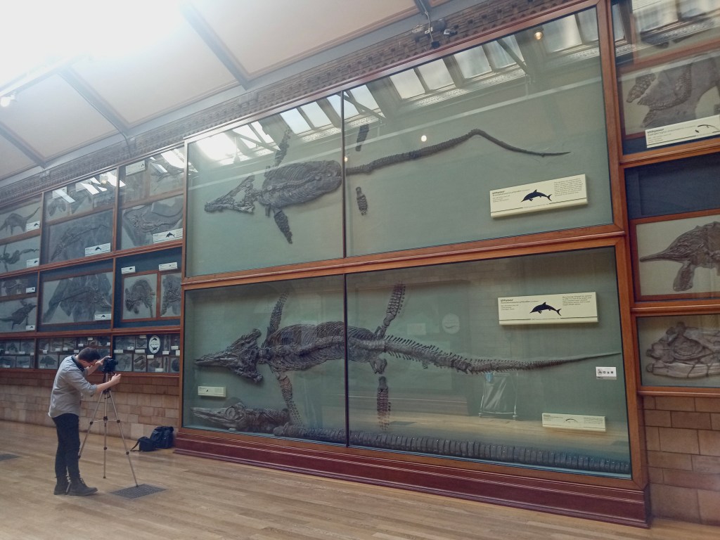 I travelled to London for four weeks, where with the expertise of Marc Jones and Mike Day, I recorded >300 ichthyosaur specimens held at the Natural History Museum and the British Museum. For a further two weeks, I visited Dorset to assess 83 ichthyosaur specimens held across Bridport Museum, Dorset Museum, Sidmouth Museum, and Lyme Regis Museum, with the help of Tegwyn Jones, Emma Luckraft, Jenny Cripps, Paul Tomlinson, Elizabeth Selby, Colin Boynton, and Paul Davis. Across museums, displayed specimens couldn’t be removed from their cabinets (except at Sidmouth Museum), and in the NHM galleries, Paul Kavanagh provided a lift to access the specimens high on the wall. These specimens were then verified and their information developed using the collections management systems or knowledge of the curators at each institution.